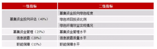 对于满足以上基本认定标准的绿色债券,我们进而对其绿色程度进行评估。该评估主要从募集资金投向评估、募集资金管理、信息披露、职能保障四个方面进行,最终得出该债券的绿色等级。