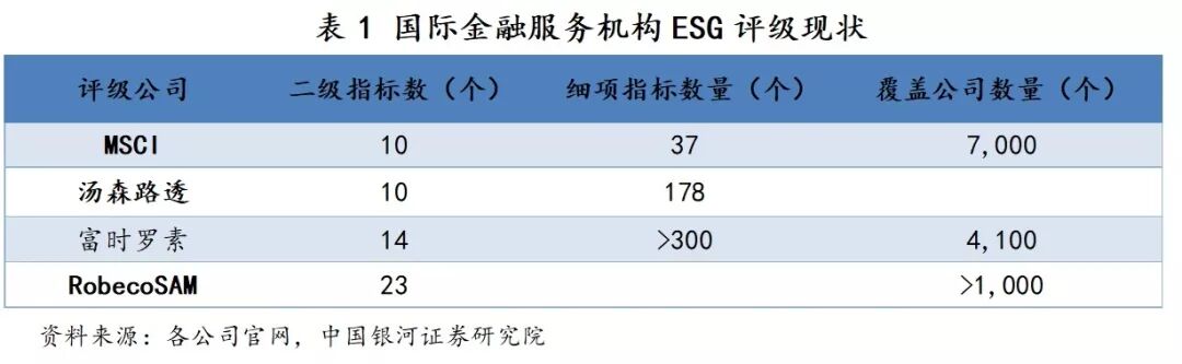 我们发现,成熟市场的ESG投资的快速发展主要得益于其完善配套的ESG评价体系和整合流程。安联资产管理制定了严格的ESG评价综合框架,包含11项流程,即非政府组织对话、ESG公司标准和监管、保险和投资中的ESG推荐流程、ESG敏感业务指引、敏感国家列表、ESG评分、积极的所有权、风险对话、排除政策、资产经理的选择-授权-监控和审查、ESG相关业务机遇等。瑞士信贷制定了ESG标准全面整合体系(Holistic integration of ESG criteria),包括排除、整合、积极的所有权、ESG报告,其中排除包括基于规范的排除、基于价值的排除、涉及争论的排除、国家排除;整合包括ESG数据和评级、ESG相关的风险和机遇、对联合国可持续发展目标的贡献,积极的所有权指的是执行股东权利(优先投票权)和关于ESG问题的对话;ESG报告包括投资组合可持续性质量月度报告、投资组合与ESG标准的一致性和相关争论等。