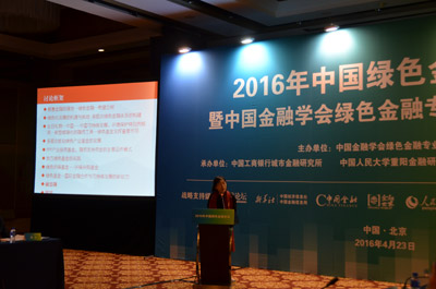 开发银行最初成立的时候,94年是咱们国家最大的政策性银行,后来市场化改制,我们用市场化的手段,实际上还是服务的国家战略,现在是最大的开发金融机构。国开行从成立之初就以增强国力、改善民生、服务国家战略为己任,节能减排环保、绿色生态恰恰是国家战略,所以国开行在这方面做一些工作也是义不容辞的一个责任。这些年国开行在绿色信贷方面应该说发展的很快,像刚才方总介绍的,国开行在2015年年底大数绿色信贷贷款余额是15700多亿,接近于整个金融机构所有绿色信贷贷款余额的25%,曾经有一段时间接近1/3,在2014年之前。