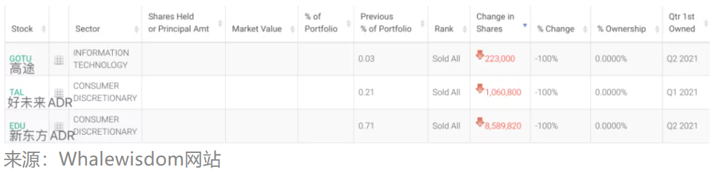 另一方面,景林2021年四季度将中概教育股清仓。报告显示,景林四季度清仓的股票有3只,分别是高途、好未来ADR、新东方ADR,均为中概教育股。此外,被卖出较多的公司还有Meta、派乐腾、台积电ADR。