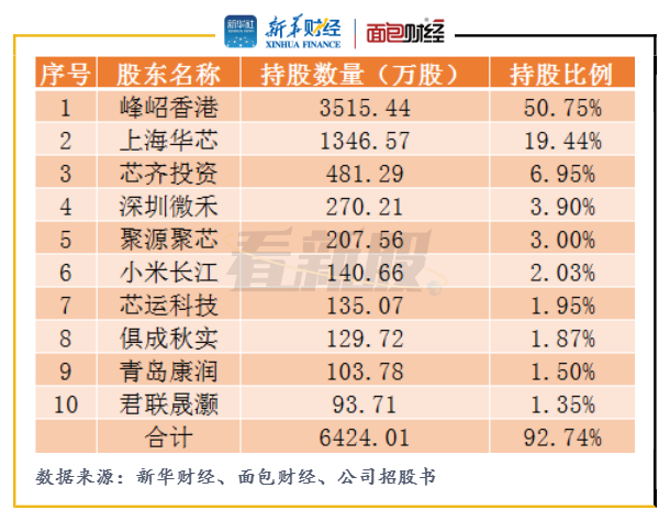 2020年6月,峰岹科技完成股份制变更。截至招股书签署日,小米长江持有公司140.66万股股份,持股比例为2.03%,为公司第6大股东。