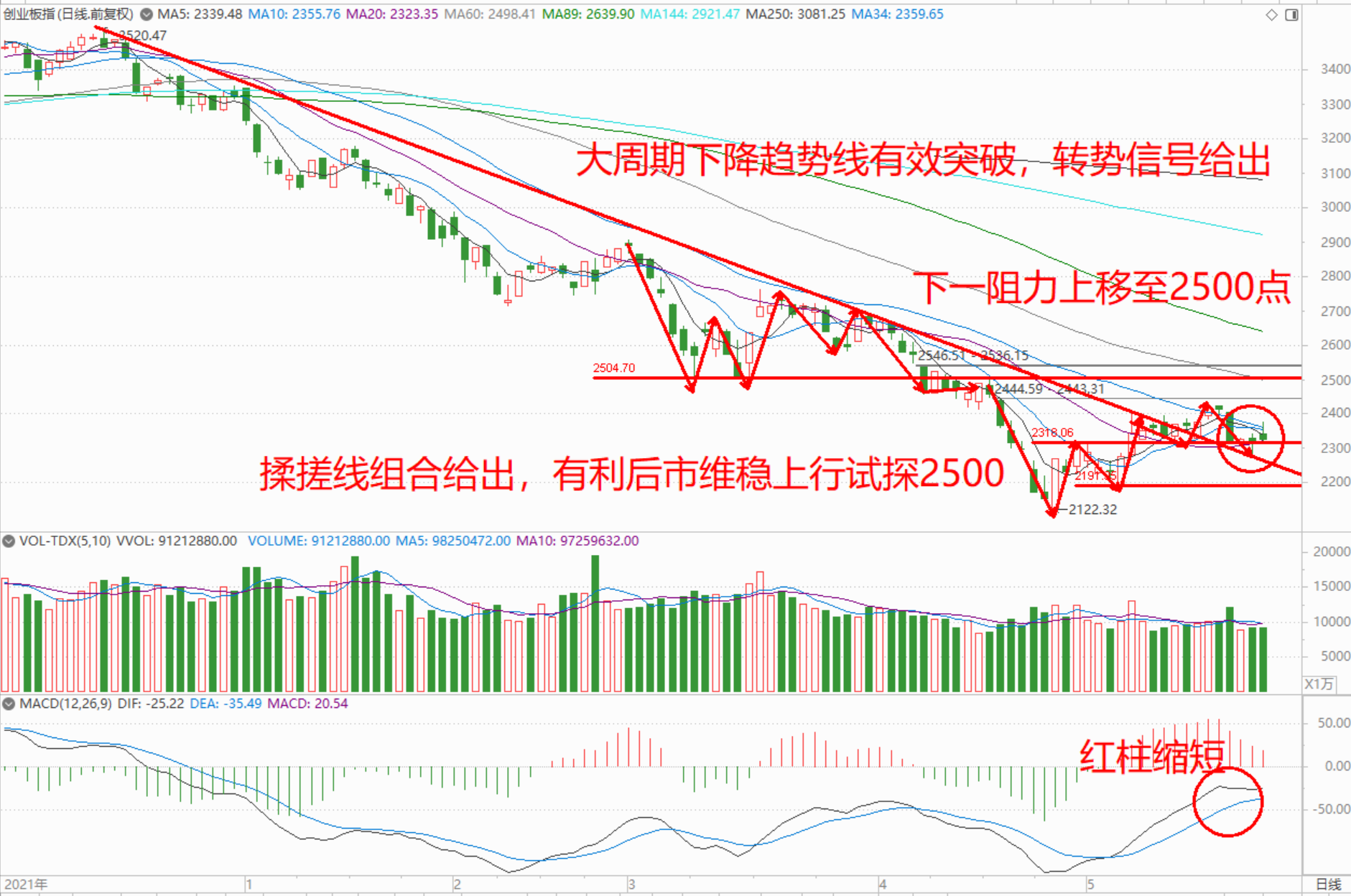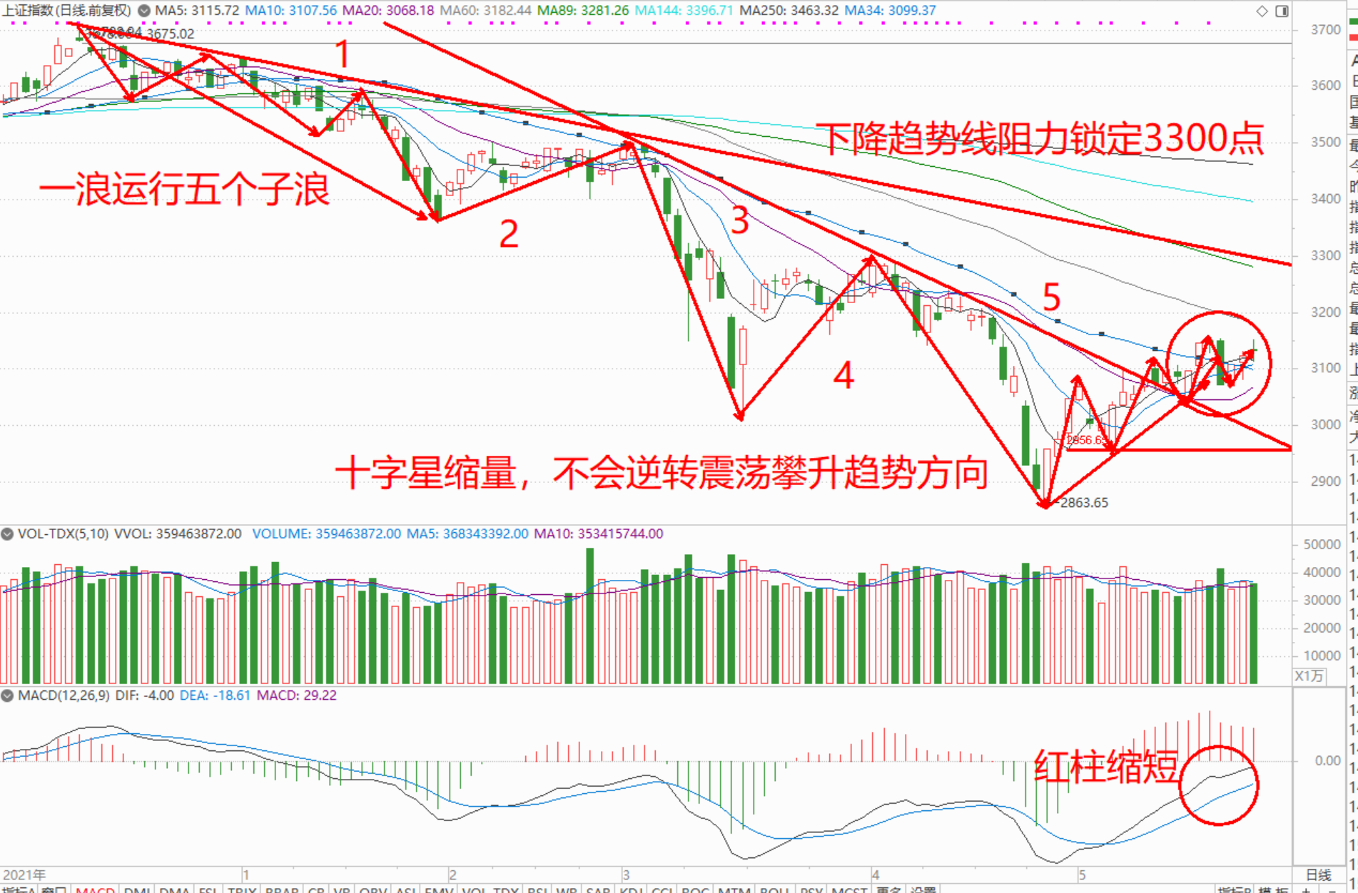 沪指看,缩量冲高回落十字星线,维稳3100点上方,明确后市即使出现小C浪杀跌,只要不破3000点一线强支撑,即可认定后市三浪预期仍在;创业板指数冲高回落震荡线与昨日长下影十字星线构成揉搓线组合,为突破中期下降趋势线的回踩确认,波动率不破2200~2250点区域强支撑,维持后市趋势看高一线判断观点;结合深成指冲高回落缩量震荡线维稳20日线、科创50指数二浪调整并未失控的运行情况,预期大涨小回的筑底走势有利5月完美收官。结合多空能量比,大涨超过9%个股93家,上涨超过5%个股192家,涨幅超过3%个股393家,大跌超过9%个股17家,下跌超过5%个股63家,跌幅超过3%个股226家的数据情况,彰显二浪整固背景下的多空博弈,总体表现克制,且未有超预期的极端涨跌波动,说明即将反包周二长阴K线的两市股指,有望在下周继续演绎较好维稳运行走势,并形成“三低”绩优股的轮动上涨。