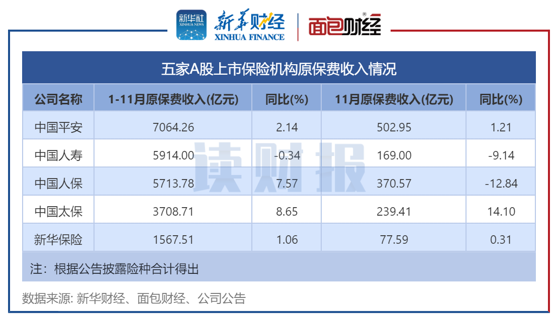 【读财报】A股上市险企前11月原保费数据出炉:共计实现2.4万亿收入 分化显著