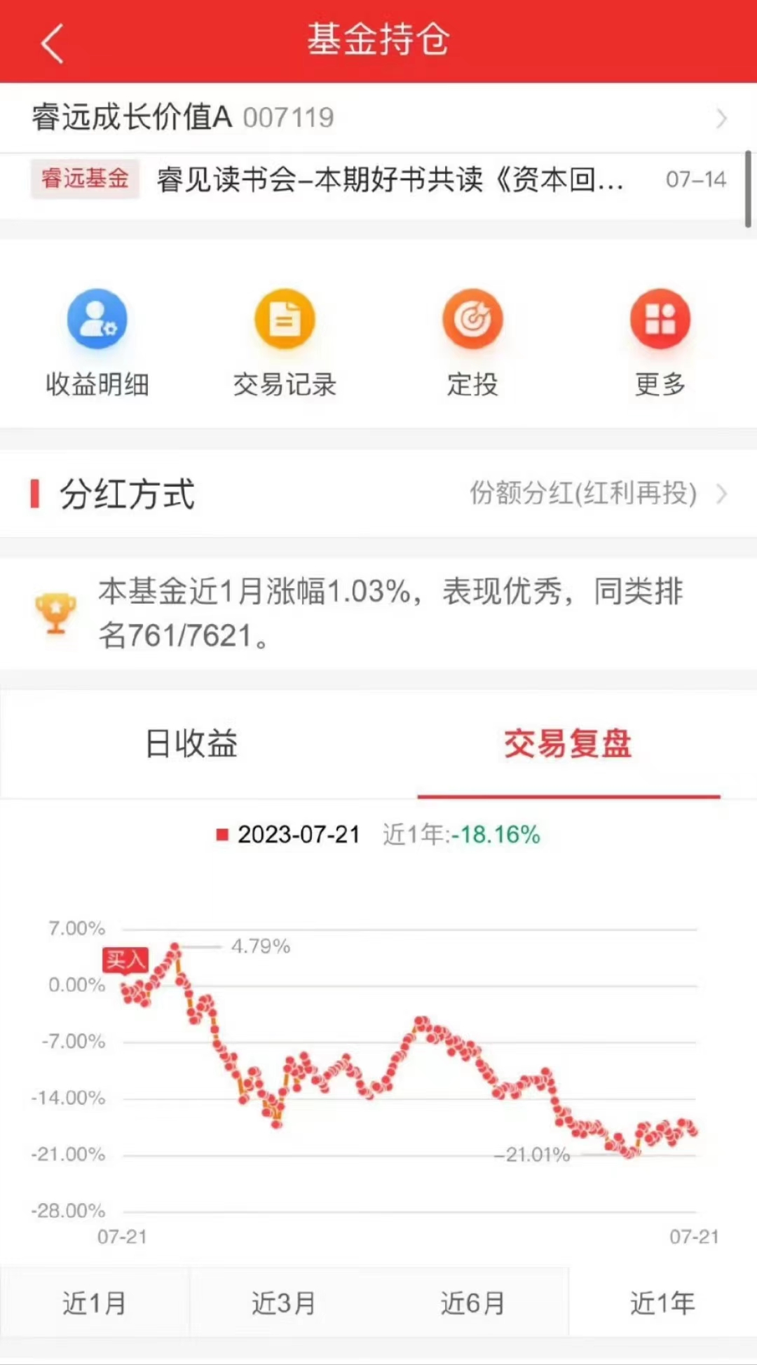从交易资料来看,该投资者仅在最近一年定投“睿远成长价值混合”便超过240次,基本达到每个交易日一次。