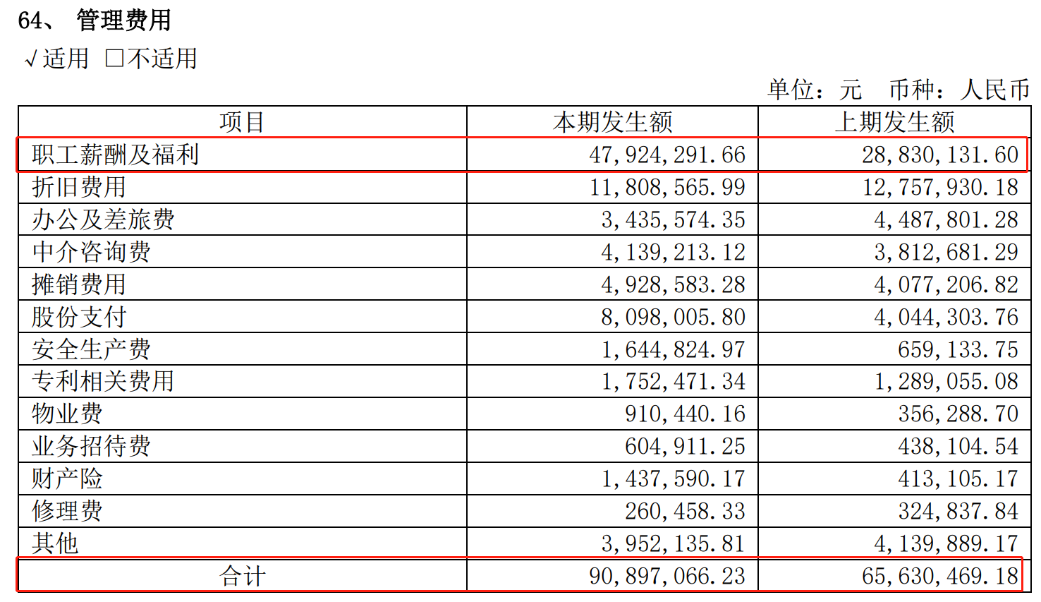 此外,今年上半年管理费用约9089.7万元,去年同期约6563亿元,同比上升38.5%,这在一定程度上也拖累了公司净利润。公司解释称:“管理费用较上年同期数同比上升 38.50%,主要系一次性费用以及股份支付费用增加导致。”