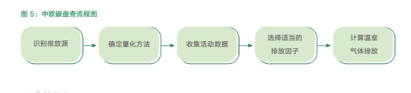 该报告采用国际碳盘查规范,设定2019年为碳排放基准年,并进一步开展了2021年跟踪评估,力争严谨、客观、准确地呈现中欧碳排放基本情况。该次碳排查涵盖了5个流程,2019年度与2021年度盘查均遵循以下步骤: