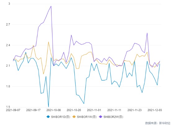 7日上海银行间同业拆放利率(Shibor)短涨长跌,隔夜品种上行超30BP至2%上方。具体来看,隔夜Shibor报2.1300%,上涨31.3BP;7天Shibor报2.1590%,上涨3.0BP;14天Shibor报2.1670%,上涨8.0BP;3个月Shibor报2.4880%,下跌0.4BP。
