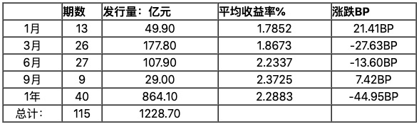 银行间质押式回购市场方面,隔夜-14D资金利率整体下行,隔夜品种再次回到1.3%附近。具体看,DR001、R001加权平均利率分别下行7.4BP、8.1BP,报1.3209%、1.3835%;成交额分别增加78亿元、减少487亿元。DR007、R007加权平均利率分别下行0.1BP、上行0.8BP,报1.5839%、1.686%;成交额占比分别上行0.1、下行1.5个百分点。DR014、R014加权平均利率分别下行1.3BP、1BP,报1.6881%、1.8654%;成交额分别减少44亿元、341亿元。