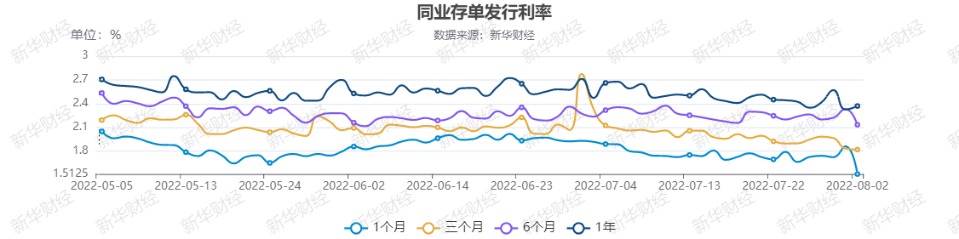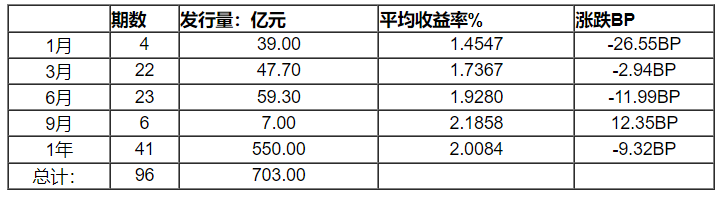 上海国际货币经纪公司交易员表示,2日同业存单一级市场1M和6M为休息日到期,3M、9M和1Y是工作日到期,收益率整体下行,其中1Y期限发行情绪高涨。二级市场各期限存单成交收益率均有不同程度下行,1Y期限成交收益率全天下行2-3BP。