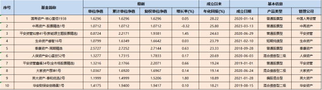 2023年6月保险资管产品年化收益前十(来源:新华财经)