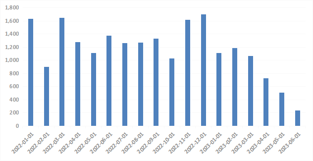 2023年1-6月信托产品新发行数量(来源:新华财经)