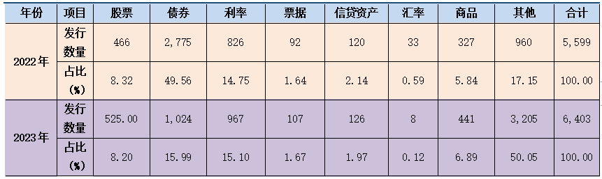 从基础资产来看,2023年1-6月新发行的银行理财产品中,债券、汇率、商品数量占比较2022年同期有所减少,特别是债券类产品下降明显,股票、利率类产品均有所上升,利率类产品上升最为明显。