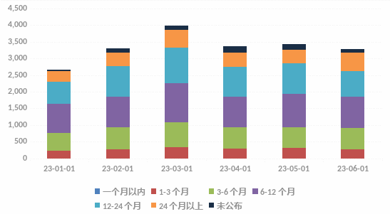 2023年1-6月,银行理财产品累计发行数量较2022年同期同比增长近2成;一季度发行数量维持递增态势,二季度发行数量维持平稳。从久期来看,新发银行理财产品中,长久期类产品占比较大。新发银行理财产品拉久期特征显著。