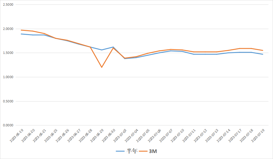 直贴市场方面,19日,票据市场利率全线下行。截至收盘,半年国股行报1.5500,下跌4.00BP;3M国股行报1.4700,下跌4.00BP。半年城商行报1.6900,下跌4.00BP;3M城商行报1.6100,下跌4.00BP。半年三农报2.0000,下跌5.00BP;3M三农报1.9000,下跌5.00BP。