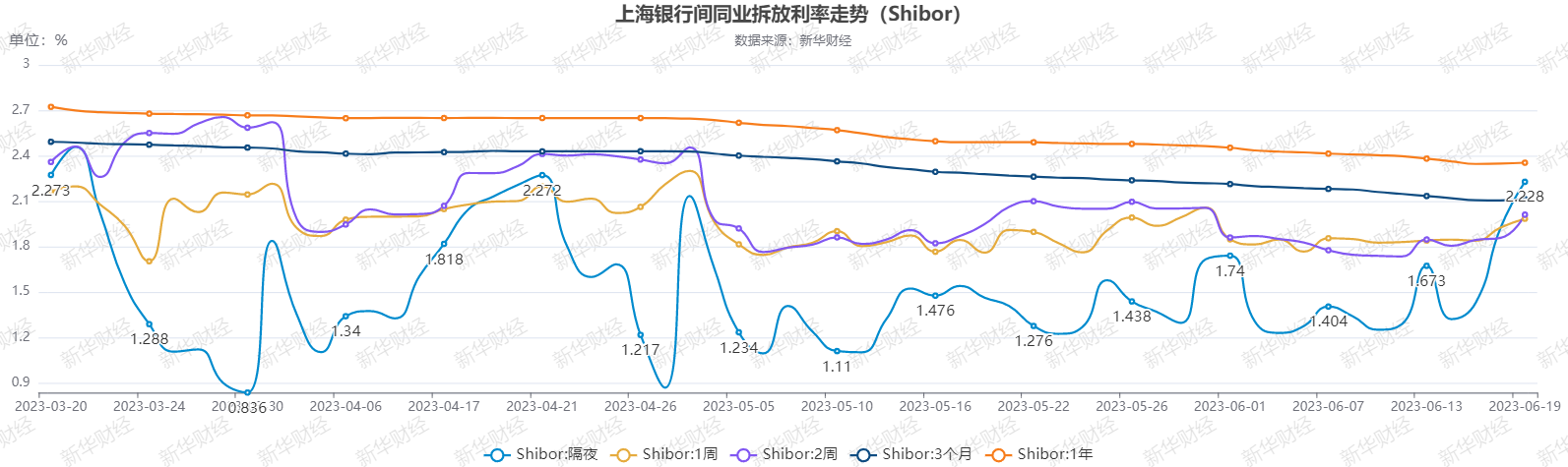 上海银行间同业拆放利率(Shibor)周一普遍小幅上涨。其中,隔夜Shibor上涨30.80BP,报2.2280%;7天Shibor上涨5.90BP,报1.9840%;14天Shibor上涨15.40BP,报2.0110%。