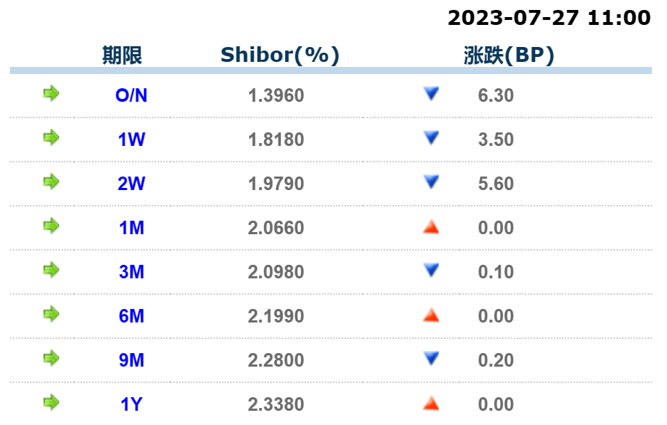 货币市场利率(7月27日)