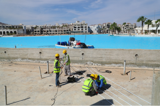 图为中方工作人员在沙姆沙伊赫“城市之星”项目工地现场施工。(新华财经记者 隋先凯 摄)