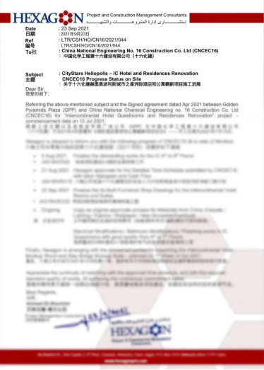 在信中,项目管理公司代表业主对十六化建埃及分公司管理团队自今年7月开工以来取得的工作进展表达肯定和感谢,期待在后续施工过程中一如既往地保质按时完成各项节点目标。