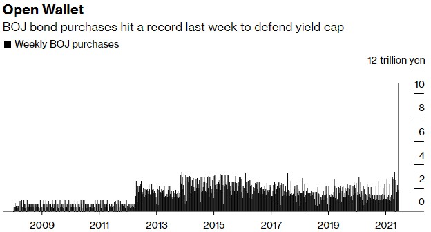 不过,日本央行行长黑田东彦在上周的会议后坚称,日本央行对收益率的控制没有受到威胁。黑田东彦表示,"即使海外收益率上升,我们也能维持对收益率曲线的控制",方法是购买所需数量的债券,并进行固定利率购买操作。