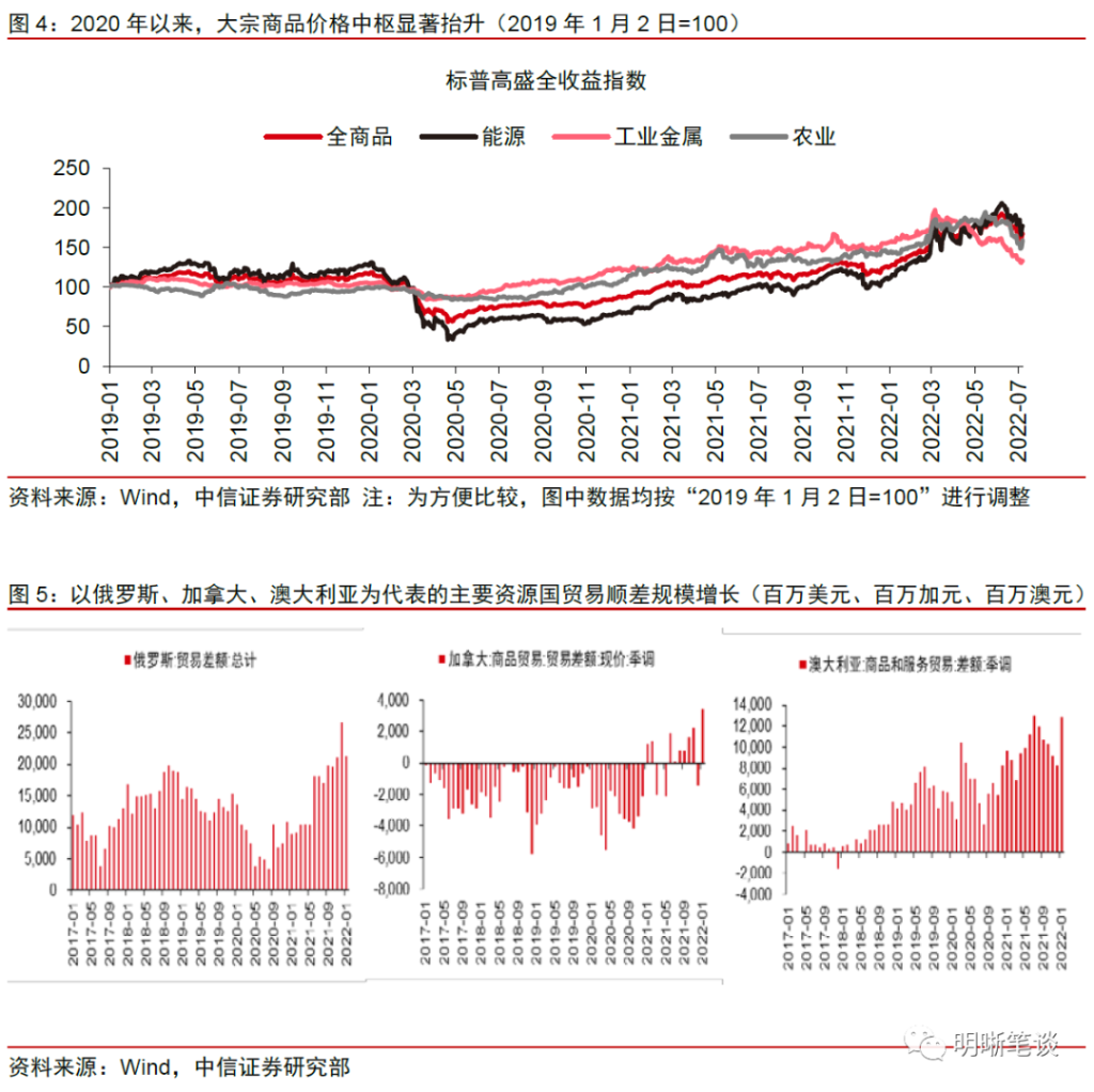 中信证券分析指出,在资源方面对外依存度较高的国家,其贸易顺差已经悄然转为逆差,经常项目对于其本币的支撑减弱。大宗商品高价对资源进口国也有显著影响。