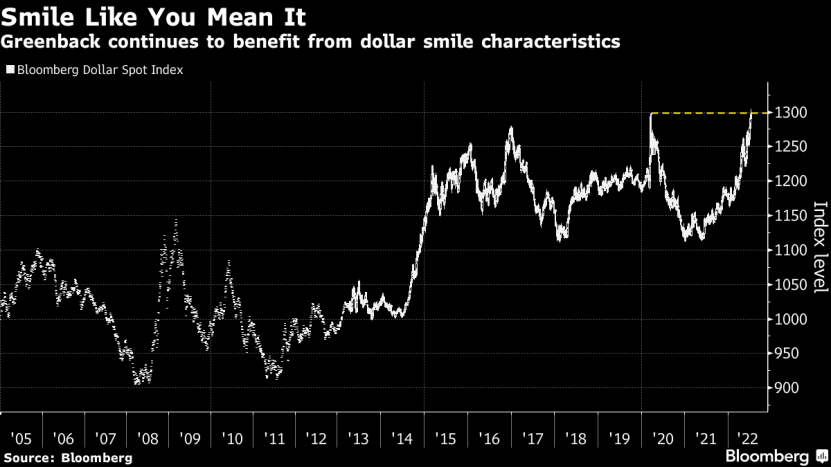 与此同时,前摩根士丹利经济学家和策略师Stephen Jen于2007年提出的美元微笑理论再次引发了关注,美元微笑理论认为,当美国处于两个极端状态时(深度衰退或强劲增长),美元都会上涨。
