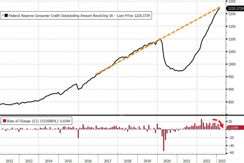 非循环信贷的暴跌表明,消费者已经削减了在大件商品上的支出。这可能表明,在高利率的重压下,美国经济正在放缓。