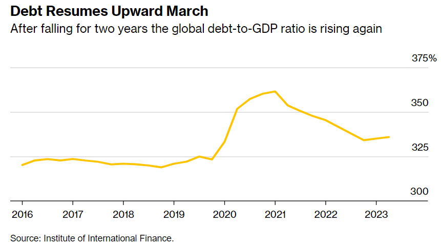 以上大佬们的评论表明,在经历了数十年来最快的加息之后,资金经理们仍然对利率上升将对借贷产生的影响感到焦虑。国际金融研究所(Institute of International Finance)的数据显示,尽管央行的加息速度放缓,但2023年上半年全球未偿债务额仍上升至创纪录的307万亿美元。