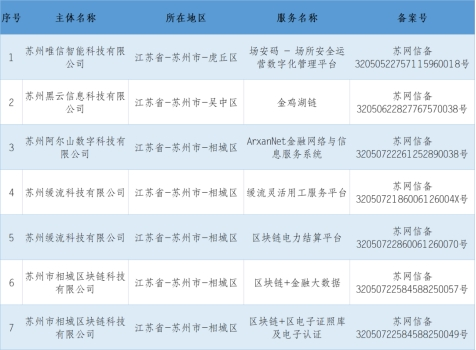 近日,国家互联网信息办公室公布第八批境内区块链信息服务名称及备案编号,来自苏州的7个区块链应用(项目)备案成功。