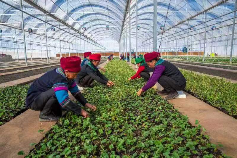 彝族妇女在昭觉县虹谷拉达现代农业产业园辛勤劳作