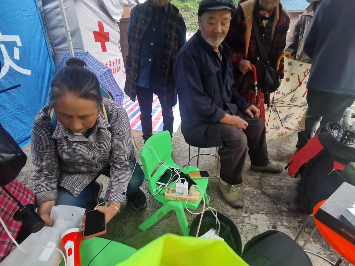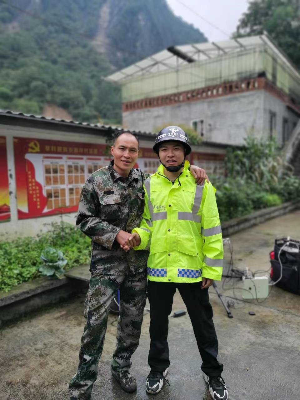 历经各种艰辛,在徒步跋涉2小时后,终于进入草科乡和坪村。在受灾群众热切渴求的目光中,9月8日15点50分,成功开通便携卫星基站。