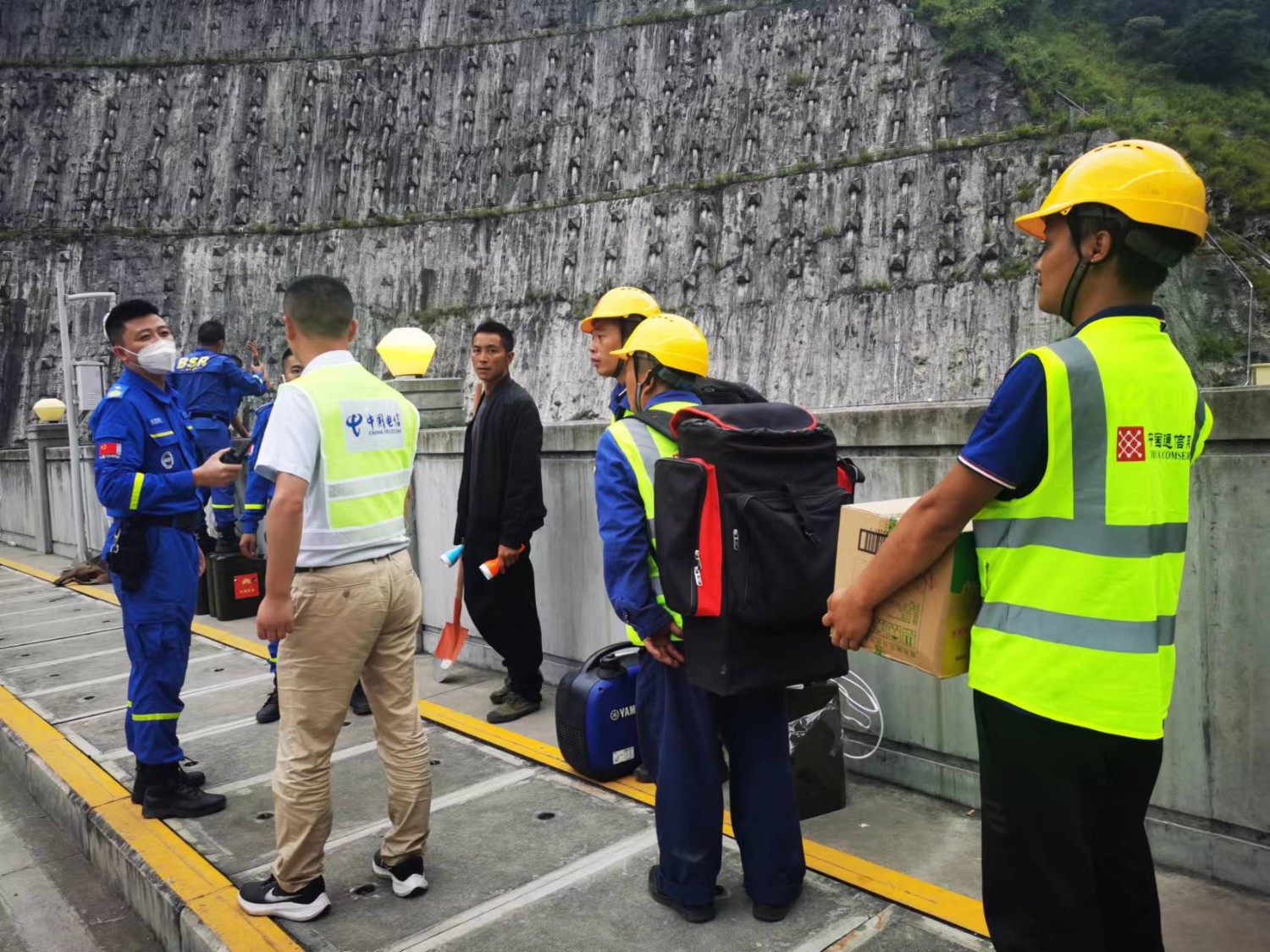 19点15分,第二抢险队到达指定上岸地点,在上山道路多处中断情况下,中国电信抢险队员克服一切困难,携带便携式基站、发电机、汽油等重达约180余斤的设备,于20点22分到达跃进村。