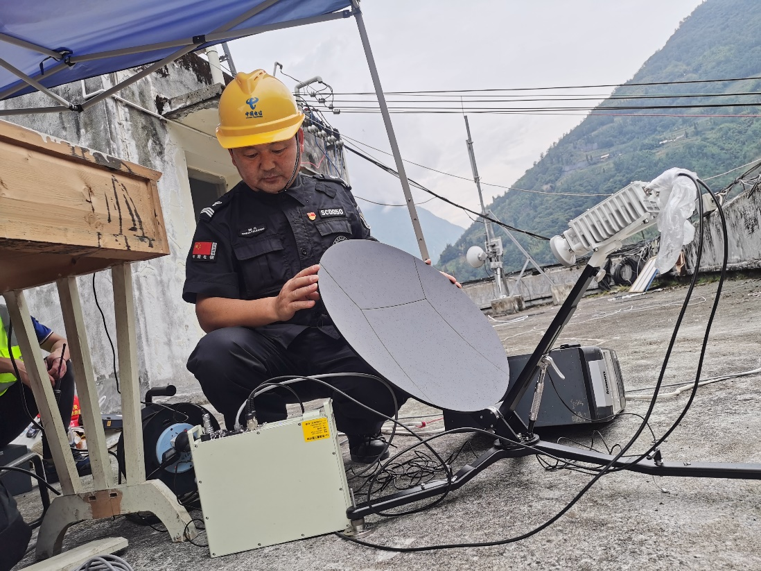 飞机一落地,廖华立马快速赶往草科乡政府指挥部,投入到抢通中。18点22分,KA卫星基站开通,为当地抢险指挥提供了重要保障。