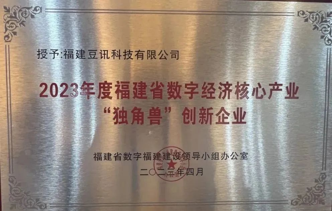 4月28日,2023年度福建省数字经济领域创新企业名单正式发布,福建豆讯科技有限公司以全省前十的成绩获评福建省数字经济核心产业“独角兽”企业。据悉,豆讯科技已连续两年获此殊荣。