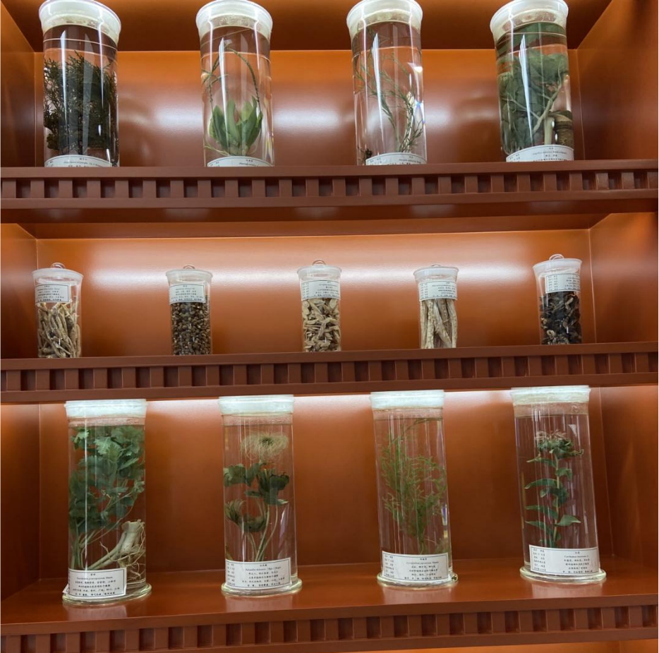 走进兴安盟扎赉特旗新林镇卫生院中医馆,庭院里白色的赤芍花随风摇曳,浓郁的中草药香味扑鼻而来,中医馆内天冬、前胡、白头翁等中药材陈列在展柜中,中医药文化氛围浓郁。