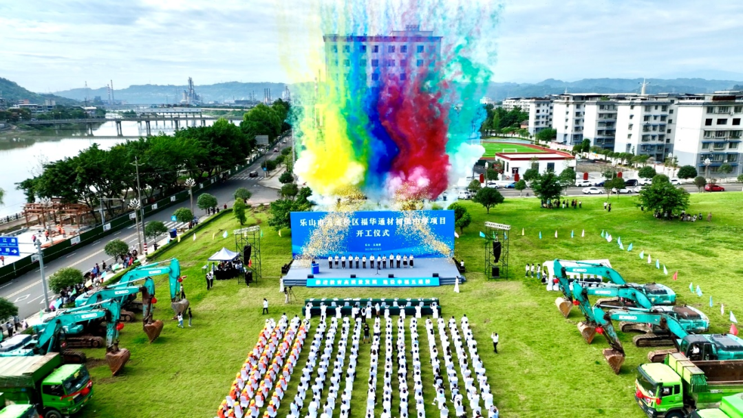 9月20日,乐山市五通桥青龙山下,机器轰鸣、人声鼎沸,乐山福华通材初级中学开工仪式举行。这是四川福华集团承担社会责任、支持乐山市教育事业发展的又一动作。