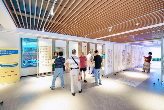 启动仪式结束后,各位领导嘉宾一同参观了位于福建老年大学老年金融教育宣传基地内的主题书画作品展。此次展出的作品包含了“坚守金融初心 护航幸福晚年”主题书画大赛的94幅优秀参赛作品,这些作品巧妙地将基础金融知识、反诈常识和金融风险提示标语等内容融入艺术创作,展现了金融服务百姓民生风采,以及老年人积极向上的精神面貌。除金融书画展览区外,老年金融教育宣传基地内还设置了金融教育宣传专区,展播金融科普、消费警示等图文及视频内容,放置金融知识读本、党史等书籍供老年群体阅读。