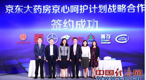 在“京心呵护计划”发布现场,拜耳、云南白药、东阿阿胶、辉瑞、同仁堂等药企负责人与京东大药房签署协议,成为该计划首批成员。拜耳大中华区总裁朱丽仙女士表示,双方未来将共同推进战略合作关系并且致力于将此关系合作的更深更广,以帮助消费者更好的理解自我保健并且提供其更多地解决方案。云南白药党委书记、副总经理王锦表示:“药品行业流转环节众多,药品企业难以实现对消费者的直接触达。对于消费者以及品牌方自身来说,都是不利的。‘京心呵护计划’的大数据开放、重构场景这些策略解决了药企营销中的很多痛点。相信此次与京东的合作,会为双方带来更大的成长空间。”