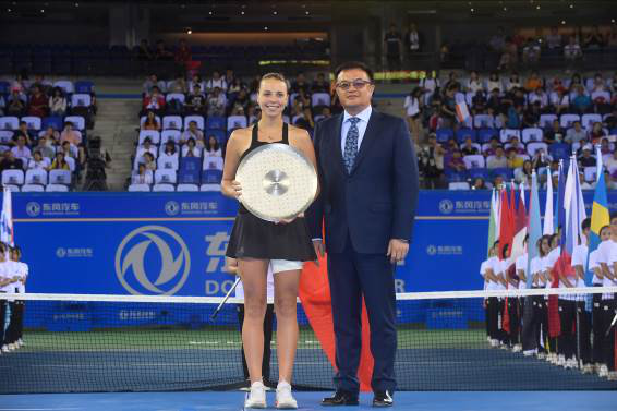 东风汽车集团有限公司副总经理尤峥向单打亚军康塔维特送上亚军奖盘