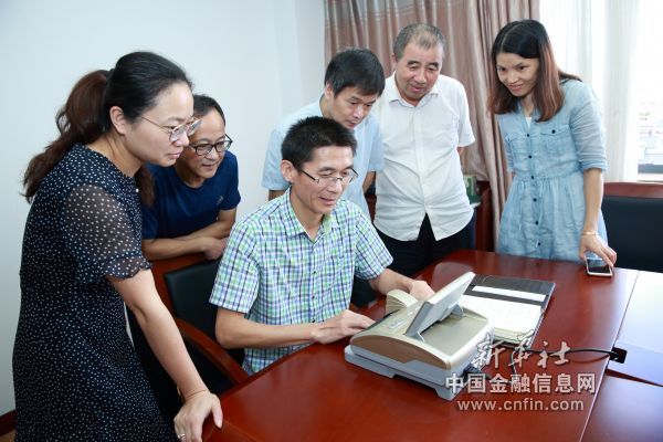 在吕金荣办公桌上,一本壳面已显陈旧的活页大笔记本特别引人注目。本子特别厚有400多页,打开一看,里面字体大大小小,到处划得花花绿绿,原来全是各种制度文件等资料。这个笔记本可是独一无二的,因为这是吕金荣自己动手装订的。他说这些资料如果保存在电脑中查找起来比较麻烦,一份份收藏着照样不好找又容易丢失,而这般集纳起来用活页装上,就可随时增添更新,随时查找阅读。本子里一些资料貌似普通,实则不凡。像有次他去听一个讲座,特意录下了一位专家的授课,并整理出了一份票据防伪知识大全,里面有新版票据的号码特征、票据主题图案、水印鉴别等内容。对照这份资料,一般票据很快就能分出真假来。吕金荣说,这资料仅此一份,又全又细,要是同事发现有吃不准的票据,只要看下找这资料找一比对就行。