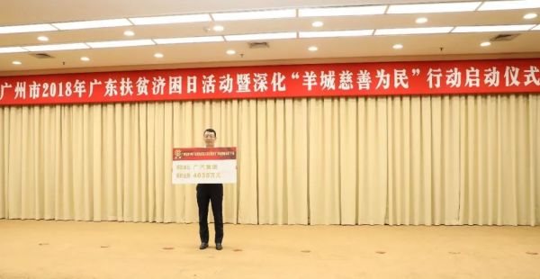 广汽集团完善公益品牌理念,打造可持续发展的公益体系,每年度积极参与广东扶贫济困日暨“羊城慈善为民”行动,对接多个慈善项目,2014-2018连续五年成为广东扶贫济困日暨“羊城慈善为民”行动启动仪式上捐款最多的国有企业。