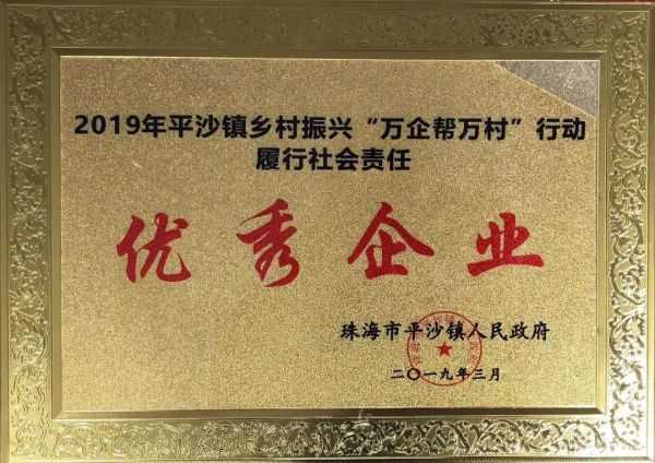 近日,广东省珠海市平沙镇“2019平沙镇大力推动经济高质量创新发展交流会”隆重举行。会上,杭萧钢构(广东)有限公司(以下简称“广东杭萧”)作为2018年平沙镇经济发展“产值贡献十强”企业以及2019年平沙镇乡村振兴“万企帮万村”行动履行社会责任“优秀企业”接受表彰。