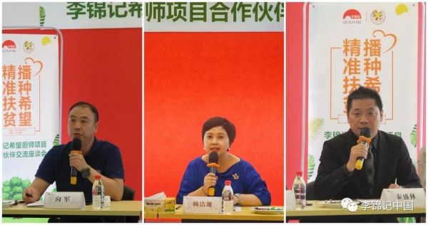 李锦记中国企业事务总监赖洁珊女士(中)、北京劲松职业高中教务处副主任向军(左一)、成都财贸职业高级中学校的旅游烹饪专业部部长秦盛林分享希望厨师项目进展