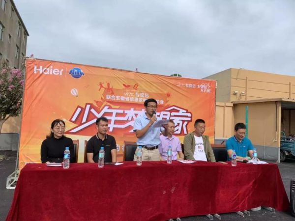 这次“少年梦想家”的活动落在了安徽阜阳海尔希望小学,安徽省信息家电行业协会周保宇先生、海尔集团安徽分公司营销总监杨小会先生、海尔集团安徽分公司区域总监万猛先生、阜阳福海商贸有限责任公司总经理杨玲女士、阜阳电视台记者李响先生都纷纷现身活动现场。