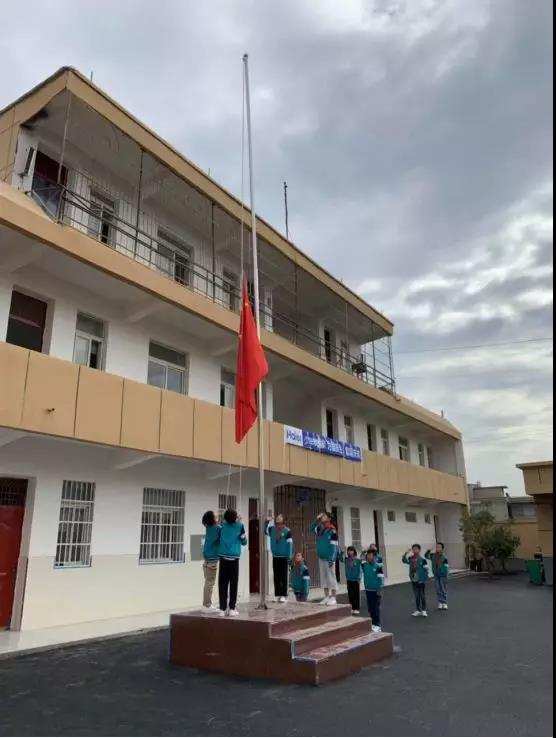 可爱的孩子们手持着红闪闪的国旗走着整齐划一的步伐,这一刻是庄严的!迎着风,国旗在孩子们的手中、在国歌声中慢慢上升!