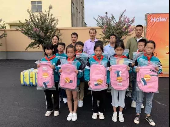 在这次公益捐赠活动中,海尔集团安徽分公司、阜阳福海商贸有限责任公司共同为学校师生免费提供了新的课桌凳和新的书籍、书包、行李箱等物资。