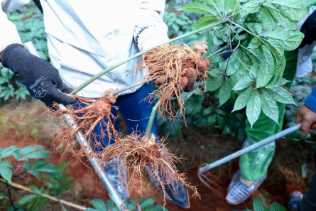 活动中,由特邀嘉宾、中医药行业专家、全国权威媒体等数十名成员组成的溯源队伍,深入石林县三七核心种植产区,除了领略当地秀美的原生态种植环境,还与三七来了一次亲密接触,在当地种植农户的示范下,亲手体验三七的采挖。