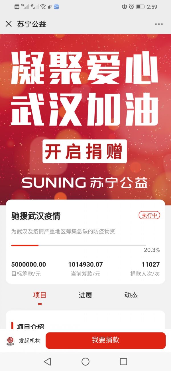 (图:苏宁易购互联网公益平台“驰援武汉疫情”公益捐款)