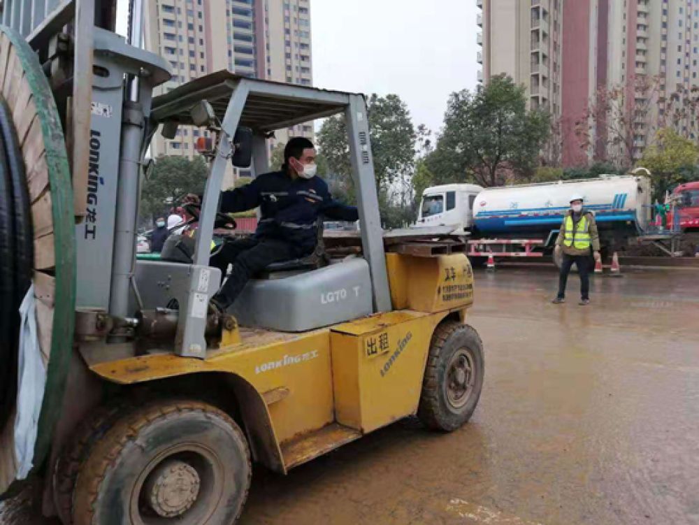 “火神山工地的叉酱”——风神物流叉车工作人员