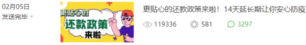 2月4日,延期还款政策发布不到3个小时,数千条留言涌入系统后台。为尽快解决客户燃眉之急,长安汽车金融积极开展技术攻坚,反复测试微信预约回复功能,提供最可靠的技术支持,确保打通客户服务“最后一公里”。截至2月底,共计收到4400余条客户留言,预约回复超过10000条客户提问,有效缓解了人工客服压力,零接触的线上服务实现回复不停歇。
