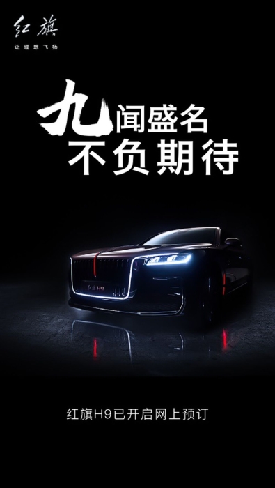 据了解,红旗H9还未对外正式公布售价,消费者也还无法亲自试驾。3月7日,红旗H9正式开启“盲订”模式,用户可通过红旗智联App或者一汽红旗天猫旗舰店参与“抢订红旗H9”活动。
